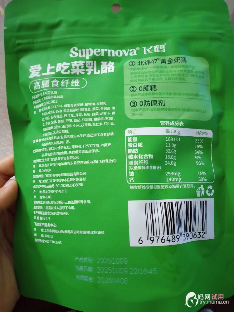 11月6日飞鹤爱上蔬菜奶酪已经收到啦,谢谢妈妈网平台和商家的活动。奶酪到手,日期还很新鲜呢。