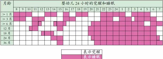 新生儿:没有白天和黑夜的概念,饱了就睡,饿了就醒,通常能一口气睡上2~4个小时。大约从6周开始,夜间睡眠时间逐渐延长。