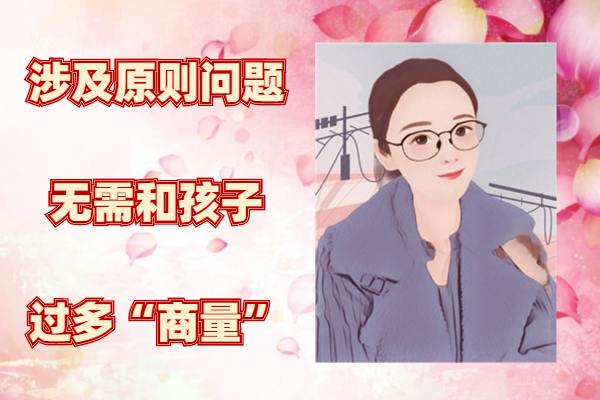 - 这样涉及原则的问题上,家长不需要多说,温柔地拒绝就可以了。不要担心因此亲子关系会产生破裂,你的拒绝本身是不带“敌意”的。久之,孩子会明白虽然家长尊重自己的选择,但家长的底线是不可逾越的。
